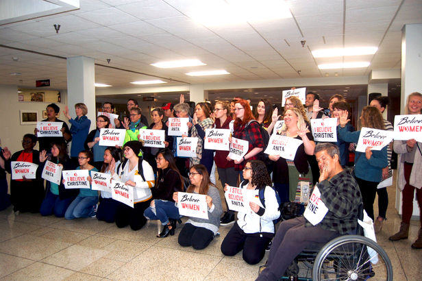 The St. Cloud State Women's Center organized a solidarity support rally for Dr. Christine Blasey Ford, and all other sexual assault survivors, as the Brett Kavanaugh confirmation hearing continued. The Women's Center set up the event as part of the National Solidarity Day organized by the leaders of the Women's March on Washington. The center urged students to come out and show their support for Ford as she was testifying before the judiciary council.